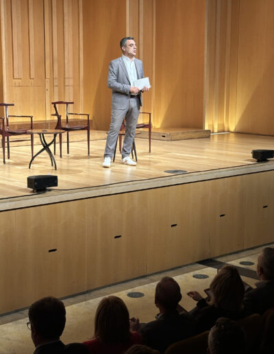 Al llarg del debat, moderat per Jofre Llombart, Lucas Gortázar va destacar la universalització de l’ensenyament com la fita més gran dels darrers cent anys i com a motor clau per a la reducció de la pobresa i la desigualtat de gènere a nivell global. No obstant això, també va recordar que encara vivim sota un model industrial -un docent, una aula, un grup- que, tot i ser qüestionat, ha perdurat per la seva capacitat d’organitzar l’educació de masses. Davant el malestar pels resultats acadèmics, Gortázar va fer servir la metàfora de la “marató popular”: en una marató d’elit les diferències són de minuts, però en una de popular són d’hores i, per tant, “a més igualtat d’oportunitats, més desigualtat de resultats” tot afirmant que “hem de ser capaços de gestionar aquesta complexitat sense caure en el pessimisme”.